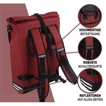 3 in 1 Fahrradtasche Gepäckträger Rucksack Notebooktasche 25L E-Bike Wasserdicht